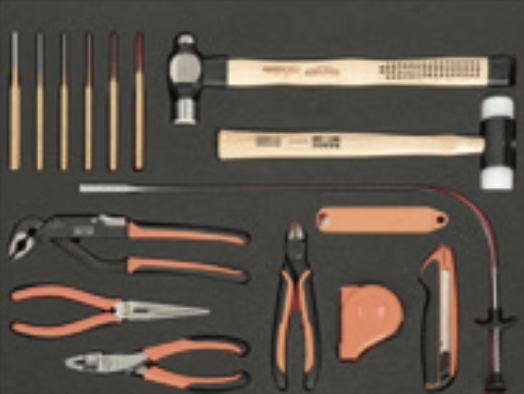 Bandeja alicaterio y de golpeo con martillos y botadores
